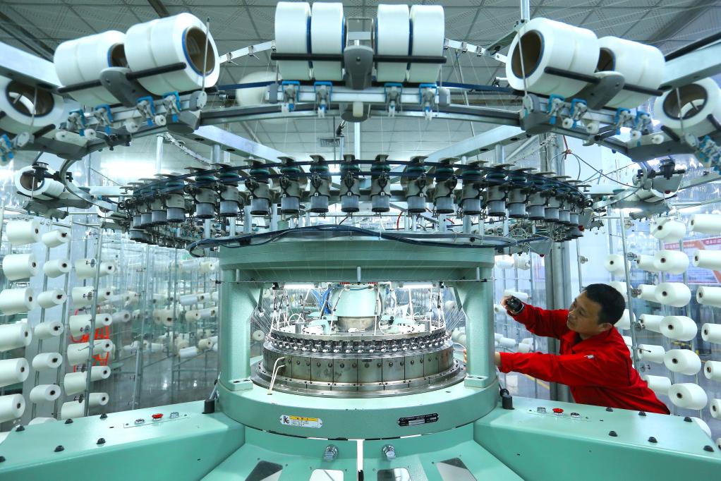 5月19日,山東省青島市即墨區(qū)龍山街道一家紡織企業(yè)的工人在生產出口海外市場的服裝面料。新華社發(fā)(梁孝鵬 攝)