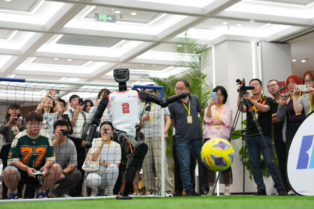 在北京市機(jī)器人產(chǎn)業(yè)園(亦莊)的“機(jī)器人大世界”前,“活力中國調(diào)研行”記者團(tuán)最新觀看了一場趣味足球賽,比賽雙方是來自北京加速進(jìn)化公司的人形機(jī)器人。正是這款機(jī)器人,讓中國團(tuán)隊在今年3月的RoboCup機(jī)器人世界杯德國公開賽上奪得冠軍。