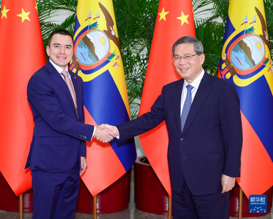 李強(qiáng)指出,中厄同為發(fā)展中國(guó)家,都把發(fā)展經(jīng)濟(jì)、改善民生作為重要任務(wù)。中方愿同厄方加強(qiáng)發(fā)展戰(zhàn)略對(duì)接,密切“一帶一路”合作,擴(kuò)大雙邊貿(mào)易規(guī)模,深化在清潔能源、基礎(chǔ)設(shè)施、金融等領(lǐng)域合作。中方樂見更多厄方優(yōu)質(zhì)產(chǎn)品輸華,歡迎厄方用好進(jìn)博會(huì)等推介平臺(tái)。雙方要繼續(xù)加強(qiáng)教育、文化、青年等領(lǐng)域交流合作,便利人員往來,夯實(shí)兩國(guó)關(guān)系的民意基礎(chǔ)。中方愿同厄瓜多爾等拉美和加勒比國(guó)家一道,以共建中拉命運(yùn)共同體“五大工程”為契機(jī),在實(shí)現(xiàn)現(xiàn)代化的道路上攜手前行。中方也愿同厄方加強(qiáng)在聯(lián)合國(guó)等多邊機(jī)制的溝通協(xié)調(diào),踐行真正的多邊主義,為維護(hù)世界和平和發(fā)展、推動(dòng)構(gòu)建人類命運(yùn)共同體作出積極貢獻(xiàn)。