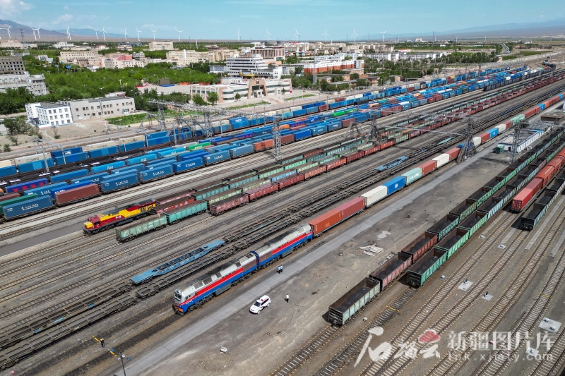 雄關(guān)矗立,汽笛聲聲。當(dāng)長風(fēng)掠過鋼軌,千年古道回響著新時(shí)代的鏗鏘足音。在阿拉山口站中歐(中亞)班列換裝區(qū),集裝箱方陣在吊臂間精準(zhǔn)流轉(zhuǎn),如跳動的音符譜寫著亞歐大陸的經(jīng)貿(mào)交響。這座向西開放的“黃金樞紐”,正以分秒必爭的效率律動,奏響中歐(中亞)班列馳騁新絲路的進(jìn)行曲——鋼鐵駝隊(duì)晝夜不息,為絲綢之路經(jīng)濟(jì)帶注入澎湃的時(shí)代動能。