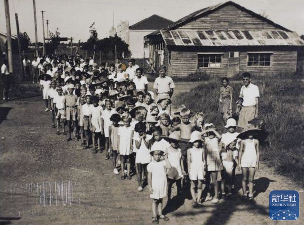 上海龍華集中營內(nèi)的孩子們(資料照片)。新華社發(fā)(上海中學供圖)