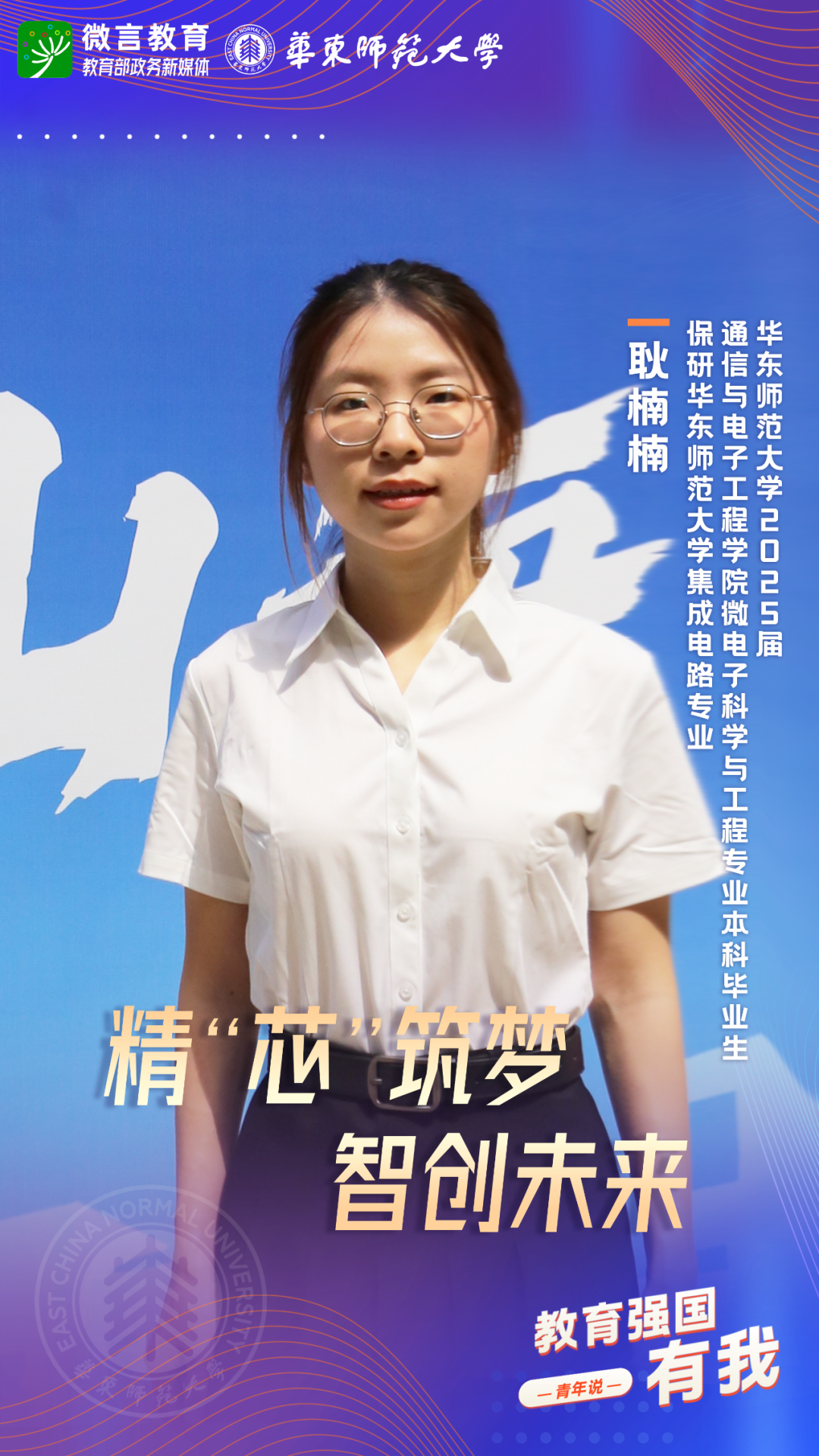 習(xí)近平總書記強(qiáng)調(diào),希望廣大青年堅(jiān)定理想信念,厚植家國(guó)情懷,練就過(guò)硬本領(lǐng),發(fā)揚(yáng)奮斗精神,到祖國(guó)和人民最需要的地方發(fā)光發(fā)熱,為中國(guó)式現(xiàn)代化建設(shè)貢獻(xiàn)青春力量。教育強(qiáng)國(guó)建設(shè),青年何為?教育部政務(wù)新媒體推出“教育強(qiáng)國(guó),有我!”網(wǎng)絡(luò)主題宣傳活動(dòng)之“青年說(shuō)(報(bào)國(guó)篇)”系列,展現(xiàn)青年學(xué)子將個(gè)人理想融入國(guó)家發(fā)展的青春擔(dān)當(dāng)。今天,跟教育小微通過(guò)1個(gè)視頻和1組海報(bào),一起來(lái)看華東師范大學(xué)學(xué)子如何“向新而行”——