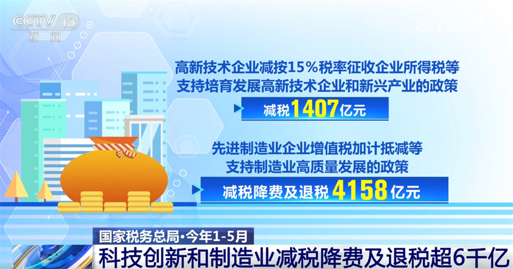 央視網(wǎng)消息:國(guó)家稅務(wù)總局7月4日公布的最新數(shù)據(jù)顯示,1—5月,科技創(chuàng)新和制造業(yè)減稅降費(fèi)及退稅超6000億元,在結(jié)構(gòu)性減稅降費(fèi)政策有力推動(dòng)下,我國(guó)科技創(chuàng)新與制造業(yè)高質(zhì)量發(fā)展加快推進(jìn)。