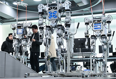 湖北省組織省內(nèi)多所高校、科研院所、企業(yè)進行科研攻關(guān)。圖為武漢格藍若智能技術(shù)股份有限公司研發(fā)團隊成員在調(diào)試人形機器人。新華社發(fā)