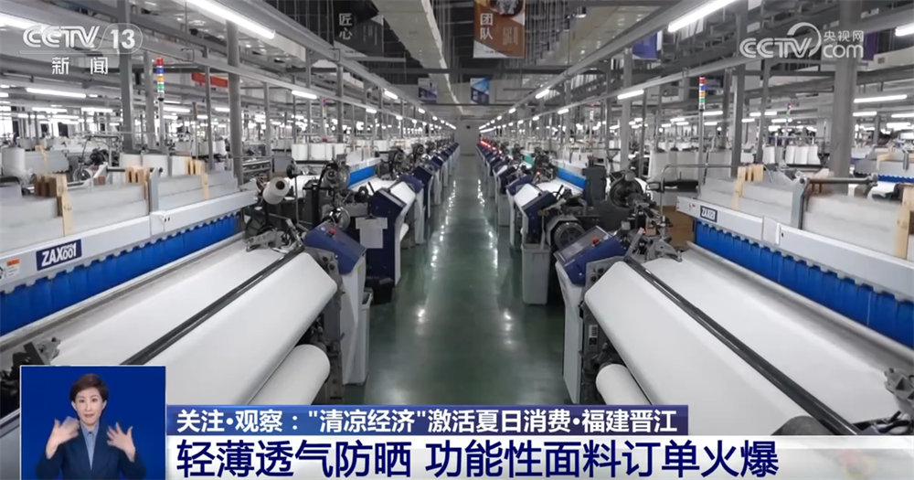 除了旅游消費,盛夏時節(jié),防曬產品也迎來銷售旺季。在福建晉江,這里的多家服裝生產或紡織面料企業(yè)生產的涼感、速干、驅蚊、防曬等功能性面料訂單火爆,備受市場青睞。