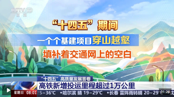 “十四五”時期,中國基建不斷跑出向新力和加速度,高鐵新增投運(yùn)里程超過1萬公里,每10個行政村就有9個通上了5G。