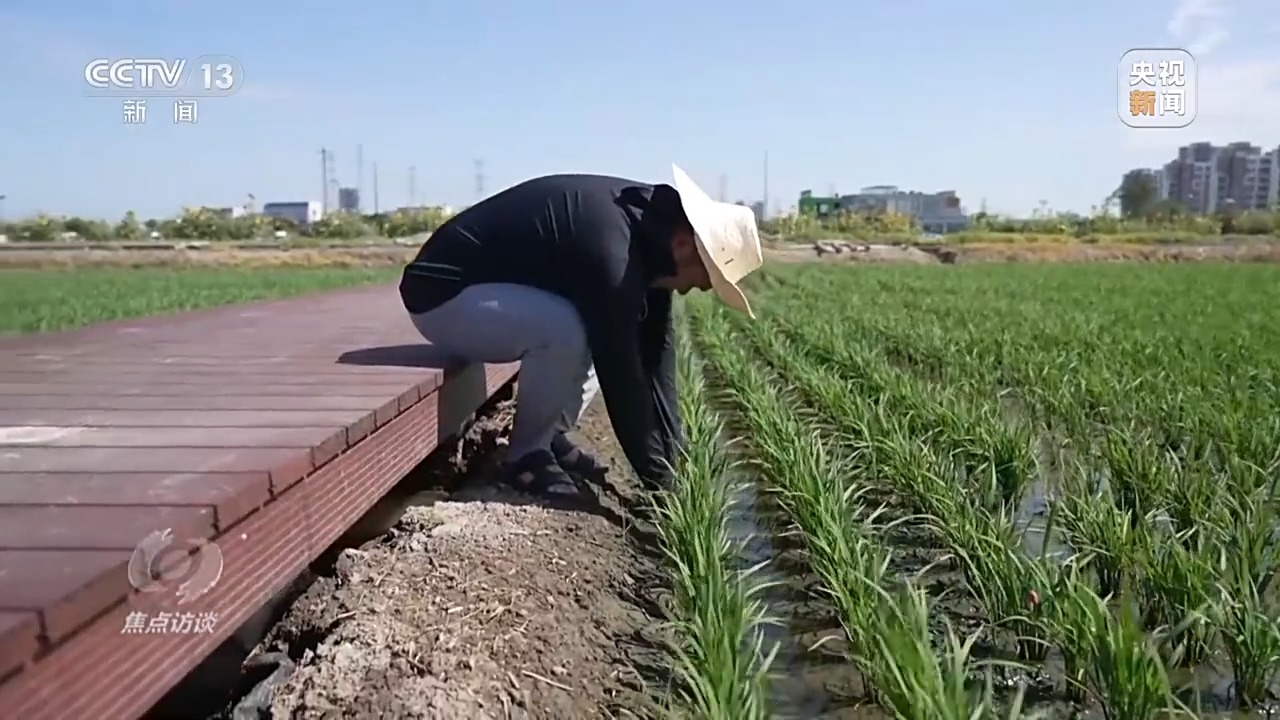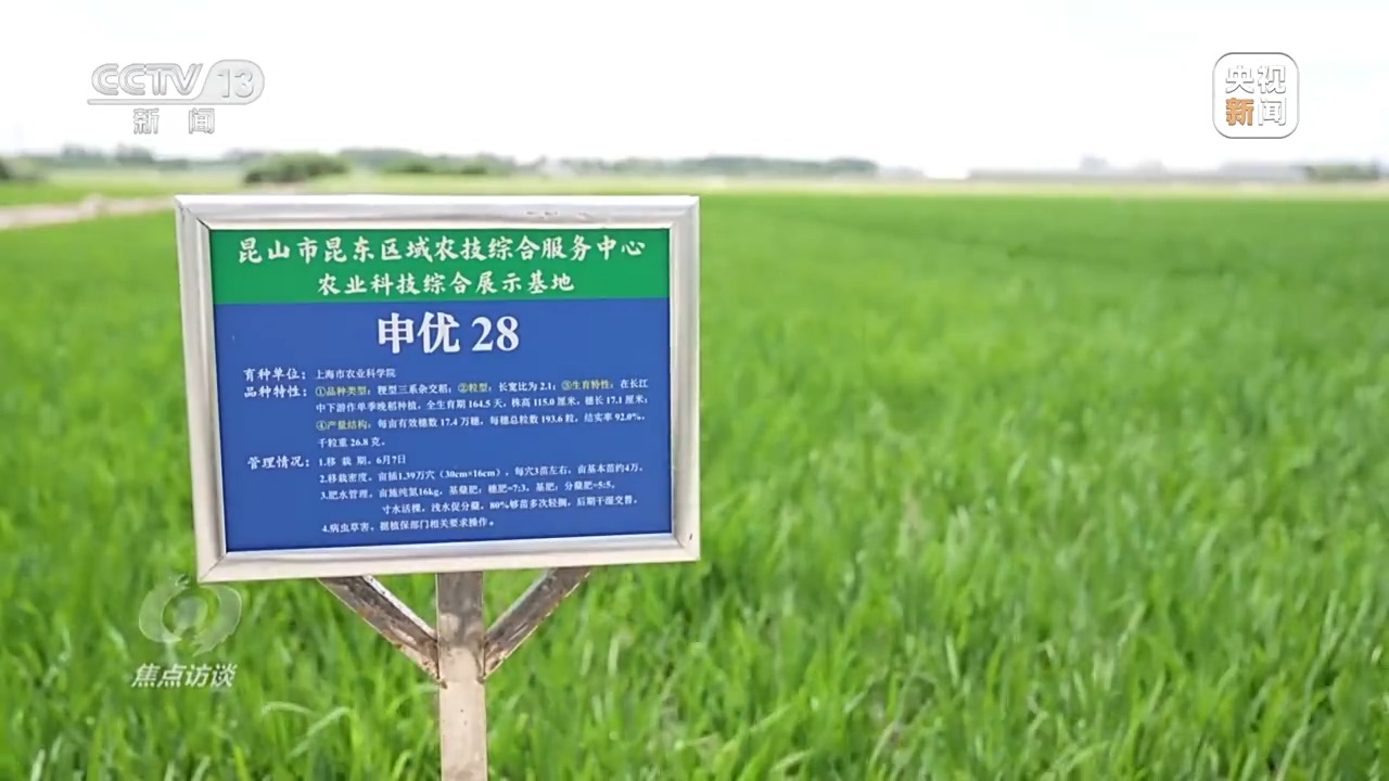 除了湖南,全國(guó)各地都在進(jìn)行良種的推廣選育,記者在江蘇昆山也看到新品種的推廣。7月7日這天,江蘇昆山的氣溫達(dá)到35℃。今年高溫來(lái)得早,這幾天室外溫度基本上都在35℃以上。昆山高新區(qū)白魚(yú)潭村的一片稻田里,種植大戶(hù)丁少坤冒著酷暑蹲在田埂上。