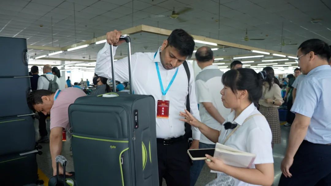 最早,當?shù)刈龅氖遣剂喟梅b廠的邊角料拼的。如今,產(chǎn)品已從最初的手提包、布袋,升級為拉桿箱、背包等。有的帶水杯架,甚至還能自己稱重、有充電USB接口……