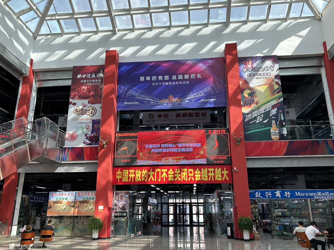 絲路文化商品城坐落于巴克圖口岸,是一座集批發(fā)零售、商品展示、商貿(mào)洽談、跨境電商、金融結(jié)算等五大功能為一體的現(xiàn)代化服務(wù)平臺。走進(jìn)商品城,仿佛置身于一個國際商品的海洋,來自哈薩克斯坦及周邊18國的進(jìn)口食品、日用品、化妝品等各類商品琳瑯滿目,應(yīng)有盡有,吸引著各地消費者紛至沓來。