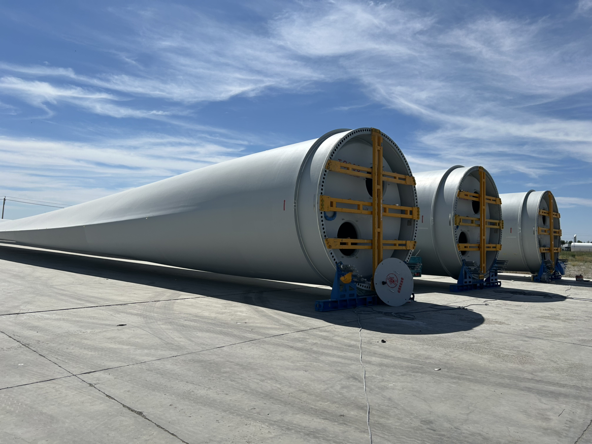 距口岸8公里的塔城重點開發(fā)開放試驗區(qū)建設(shè)現(xiàn)場,三一風(fēng)電的巨型葉片正等待出口。“我們生產(chǎn)的葉片單只長度達(dá)112米,重達(dá)41噸,平均每80個工時可以生產(chǎn)一只,單只的成本價在120萬左右。目前,我們公司接收著來自世界各地的訂單” ,塔城風(fēng)電設(shè)備有限公司行政事務(wù)專員阿斯哈爾 阿根三一表示。