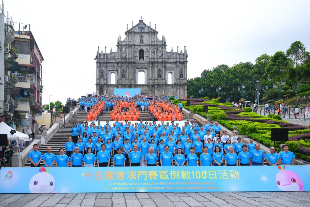 這是8月1日在澳門拍攝的第十五屆全國運動會倒計時100天慶祝活動現(xiàn)場。新華社發(fā)(張金加攝)