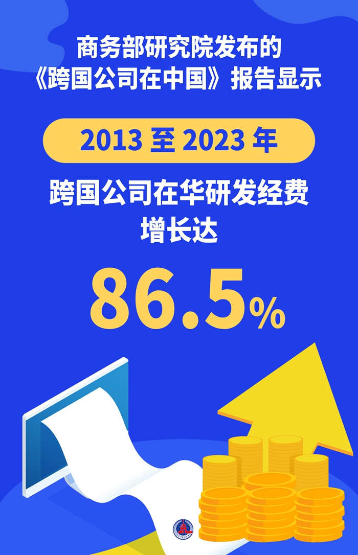 商務(wù)部研究院發(fā)布的《跨國公司在中國》報告顯示,2013至2023年,跨國公司在華研發(fā)經(jīng)費增長達86.5%。跨國公司與中國的投資合作已由“市場導(dǎo)向型”“成本導(dǎo)向型”延伸至“創(chuàng)新驅(qū)動型”。