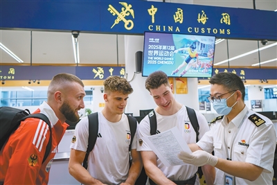 “世運(yùn)會(huì)期間正值暑運(yùn)高峰,成都天府國際機(jī)場出入境人數(shù)較平常增加了1.5倍,我們優(yōu)化了智能檢查通道,保障旅客快捷通關(guān);還開設(shè)了世運(yùn)會(huì)專用窗口,為涉賽人員提供通關(guān)、咨詢等‘一站式’服務(wù)?!背啥己jP(guān)相關(guān)負(fù)責(zé)人薛珂說。據(jù)了解,8月3日至18日是成都世運(yùn)會(huì)官方抵離服務(wù)期,預(yù)計(jì)將有超過5000名涉賽人員從成都天府國際機(jī)場等口岸通關(guān)。