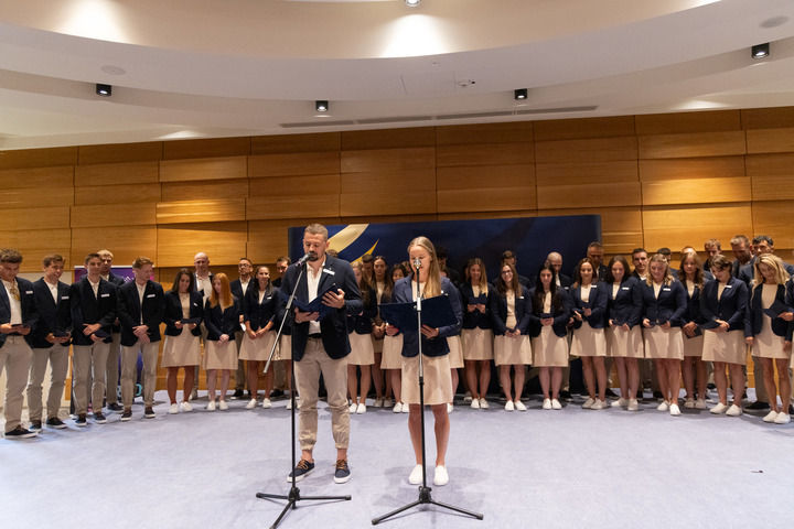 2025年7月17日,運(yùn)動(dòng)員在匈牙利代表團(tuán)誓師大會(huì)上宣誓。