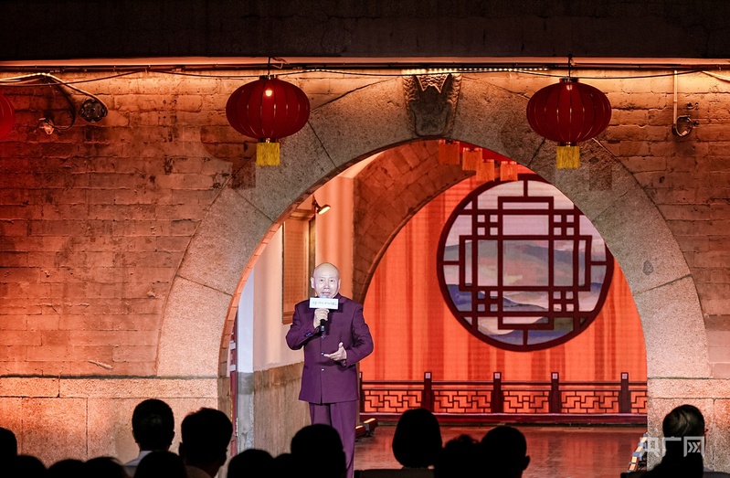 孟廣祿在古文化街戲樓前唱響《中華瑰寶》(央廣網(wǎng)記者 張強 攝)