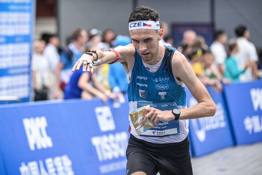 8月10日,捷克選手克日夫達在2025年成都世運會定向男子短距離決賽中。