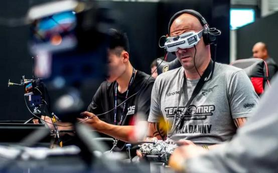 選手通過頭戴式顯示器第一視角操控?zé)o人機