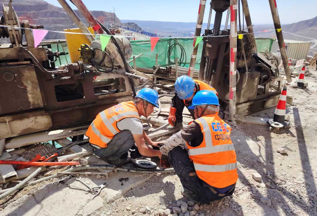 大石峽水利樞紐工程大壩右岸,工人正在1707米的海拔高度上維修灌漿設(shè)備。劉沛愷攝