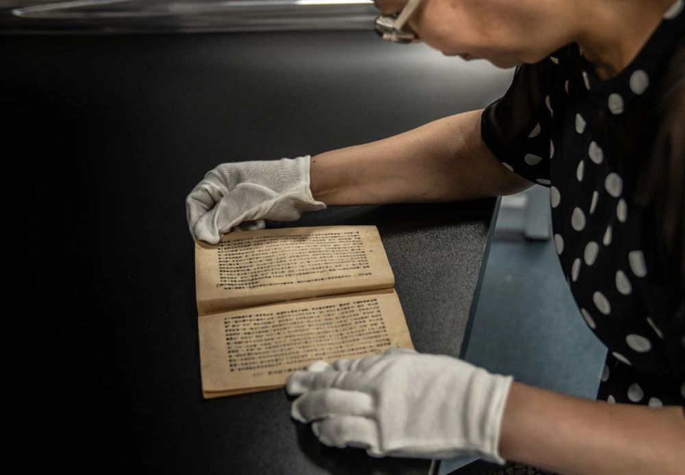 8月4日,遼沈戰(zhàn)役紀(jì)念館工作人員展示館內(nèi)收藏的穆青同志采寫的《東北抗日聯(lián)軍斗爭史略》。(遼沈戰(zhàn)役紀(jì)念館供圖)