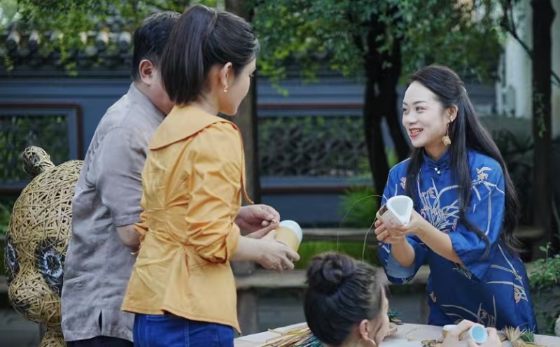當(dāng)然,文旅發(fā)展成效如何,最直接的體現(xiàn)是能否讓村民受益。村民倪龍2023年返鄉(xiāng),與妻子共同辦起民宿“竹里香居”。竹編屏風(fēng)、竹制燈罩,將民宿裝點得古樸雅致?!盀榱藢⒅裎幕捅镜卮ㄎ髁直P的民俗生活緊密結(jié)合,我們特意設(shè)計了這種民宿風(fēng)格。如果竹編藝人需要展示作品,我們也會提供場地,畢竟民宿也是村里的‘文化名片’。”倪龍說。