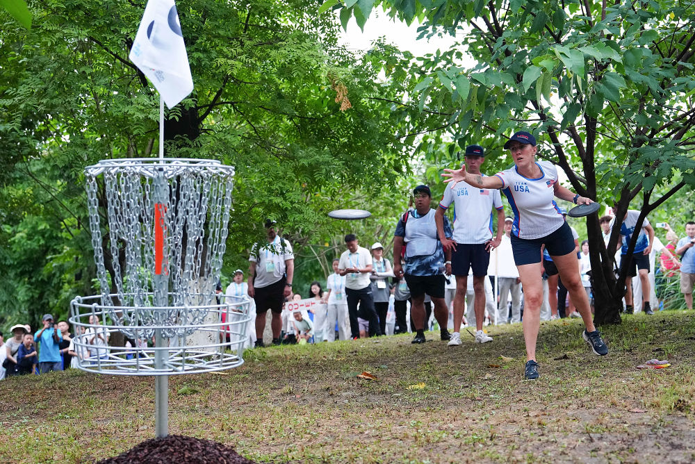 擲準(zhǔn)飛盤比賽在高新區(qū)桂溪生態(tài)公園舉行,觀眾既可登上主看臺(tái)近距離觀賽,也能在公園周邊空地的指定區(qū)域自由觀賽。奧地利選手納拉特很享受比賽過(guò)程,“我喜歡這個(gè)場(chǎng)地,有草地、有樹(shù)木、有湖泊,滿眼都是綠色”。