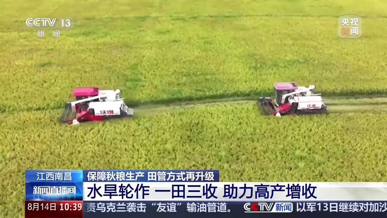 在江西南昌聯(lián)圩鎮(zhèn),一茬茬飽滿的稻穗被迅速收割、脫粒,裝入運輸車輛。而在收割機作業(yè)的田塊旁,翻耕起壟機正加緊作業(yè),農(nóng)戶們忙著清溝除雜、整理田地,為播種優(yōu)質(zhì)高產(chǎn)大豆做足準備。今年當?shù)夭捎?strong>水旱輪作、一田三收的種植方式,春季種水稻,初秋收完水稻后搶種大豆,秋末大豆收獲后緊接著種植耐寒蔬菜或油菜,三季作物茬口緊密銜接,全年無閑田。同時,通過推廣良種、測土配方施肥等技術,確保每種作物都能優(yōu)質(zhì)高產(chǎn)。