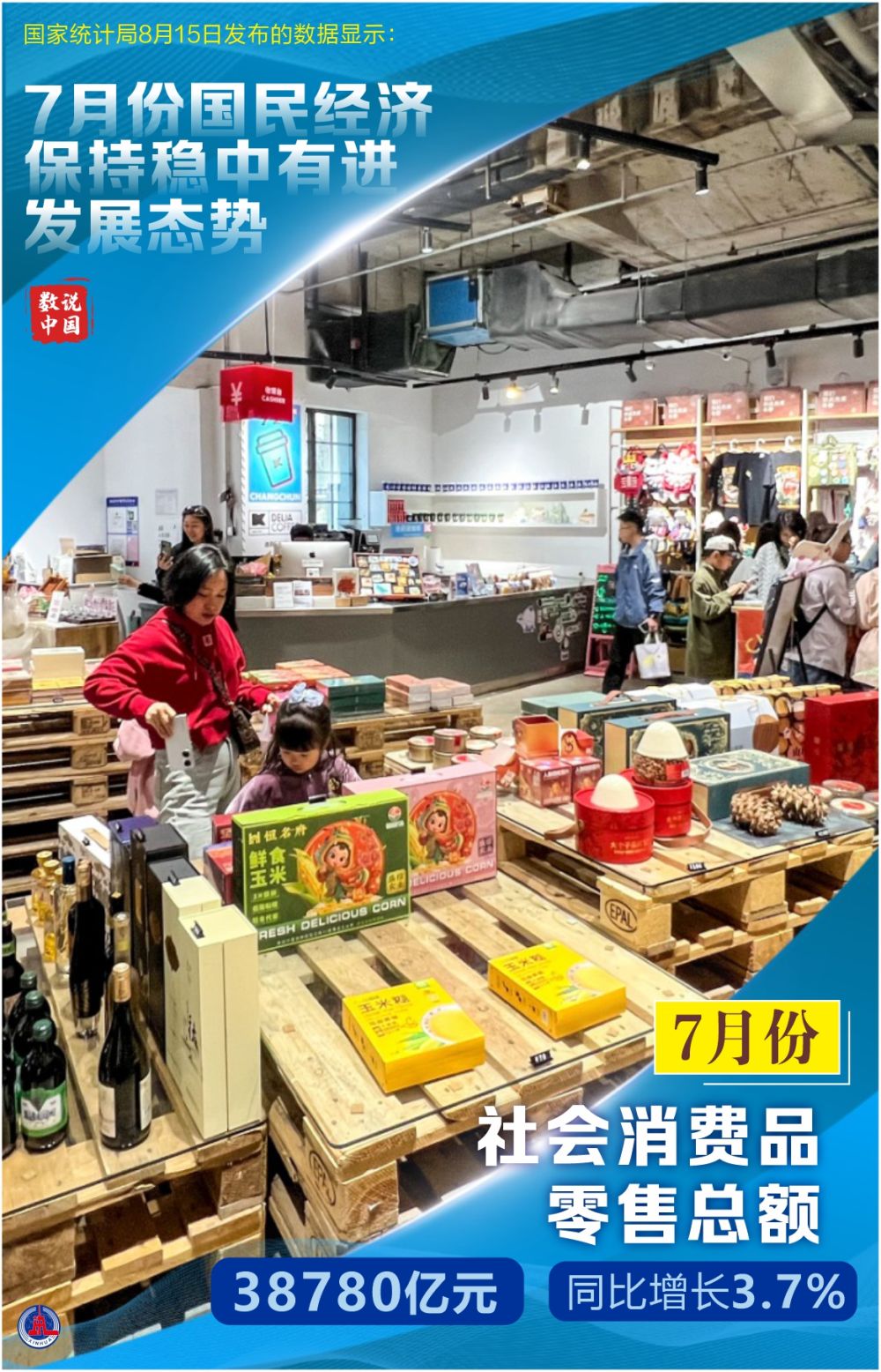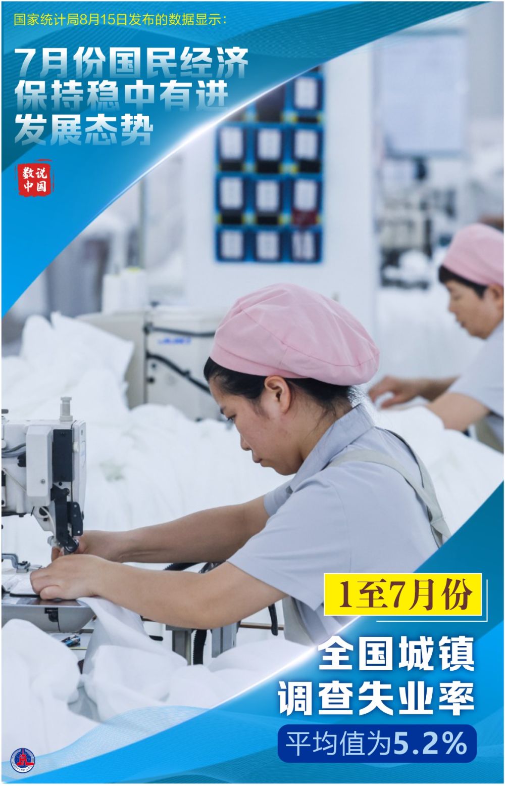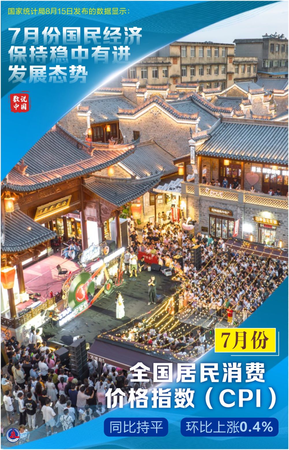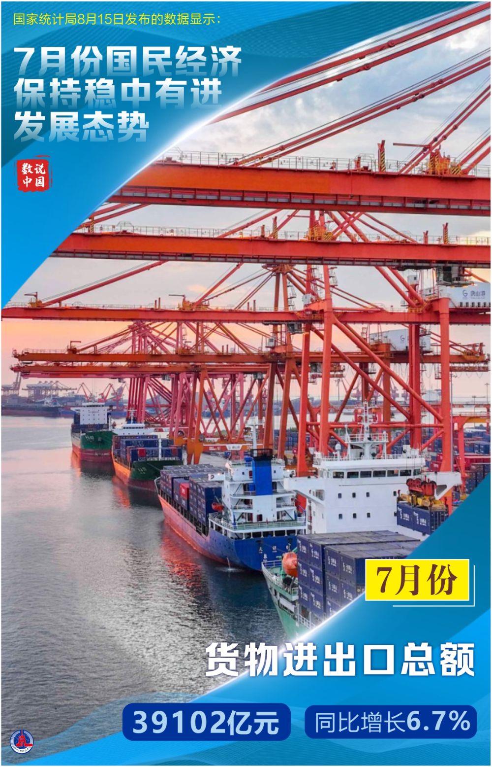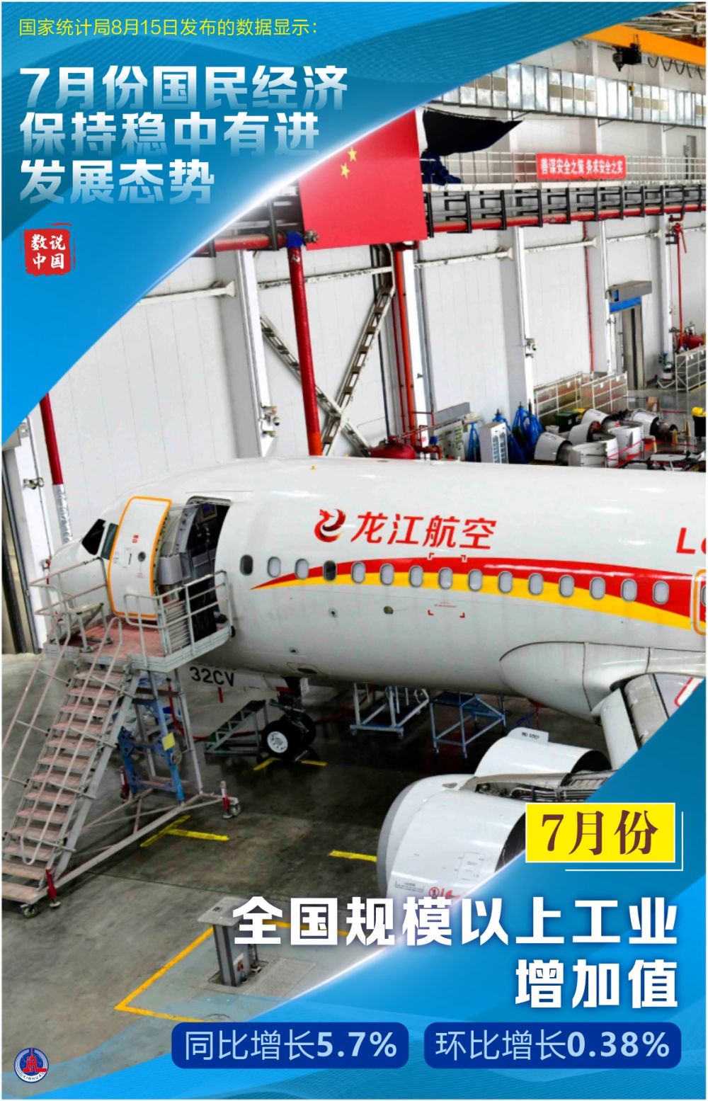 國(guó)家統(tǒng)計(jì)局8月15日發(fā)布的數(shù)據(jù)顯示,2025年7月份,國(guó)民經(jīng)濟(jì)保持穩(wěn)中有進(jìn)發(fā)展態(tài)勢(shì),生產(chǎn)需求持續(xù)增長(zhǎng),就業(yè)物價(jià)總體穩(wěn)定,新質(zhì)生產(chǎn)力培育壯大,高質(zhì)量發(fā)展取得新成效。