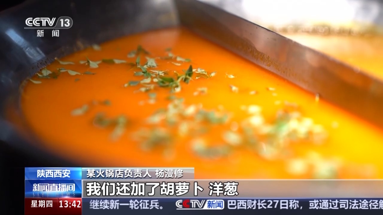 某火鍋店負責人 楊漫修:我們這個番茄鍋更像是西餐里面的番茄濃湯,比如說我們在做料的時候除了番茄以外,我們還加了胡蘿卜、洋蔥、歐芹、百里香。