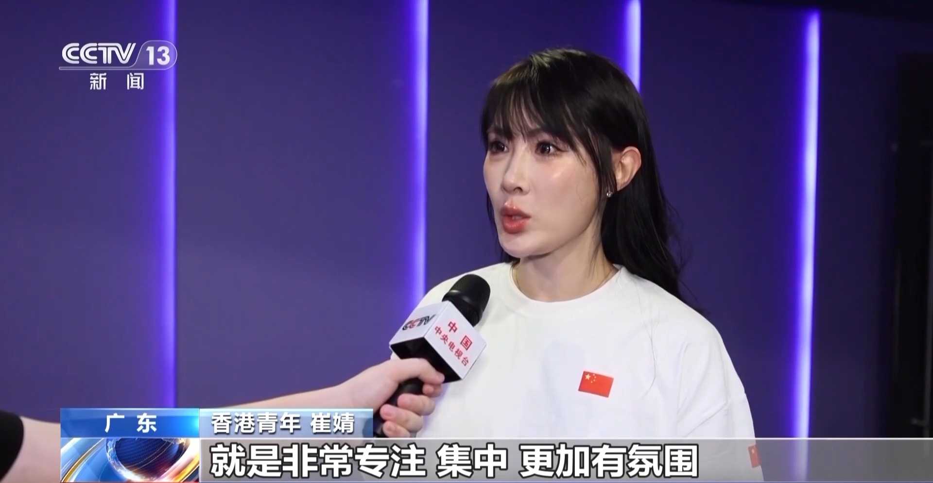 香港青年 崔婧:在電影院看,就是非常專(zhuān)注、集中,更加有氛圍,當(dāng)五星紅旗升起的那一刻,全場(chǎng)齊聲唱國(guó)歌,有熱淚盈眶的感覺(jué),感覺(jué)到國(guó)家的團(tuán)結(jié)和力量。我看到了強(qiáng)大的海陸空軍隊(duì)陣容、先進(jìn)的現(xiàn)代化武器裝備,很震撼。我覺(jué)得國(guó)家的強(qiáng)大就是我們最大的底氣,希望祖國(guó)繁榮富強(qiáng)。