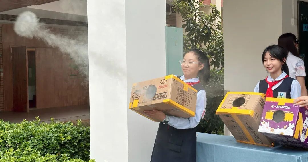 9月1日,在西安市浐灞第二小學各年級一樓的未來科學院里,“空氣的力量”實驗正在精彩上演:學生們手持自制空氣炮,輕輕一推,“砰”的一聲,煙霧圓環(huán)隨即而出,在現場“哇”聲一片里,感受科學的力量和魅力。