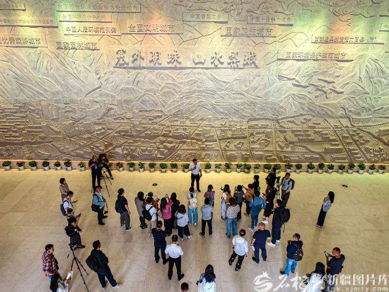 9月8日,在巴州鑄牢中華民族共同體意識主題展館,采訪團(tuán)拍攝南疆火車通車雕塑。