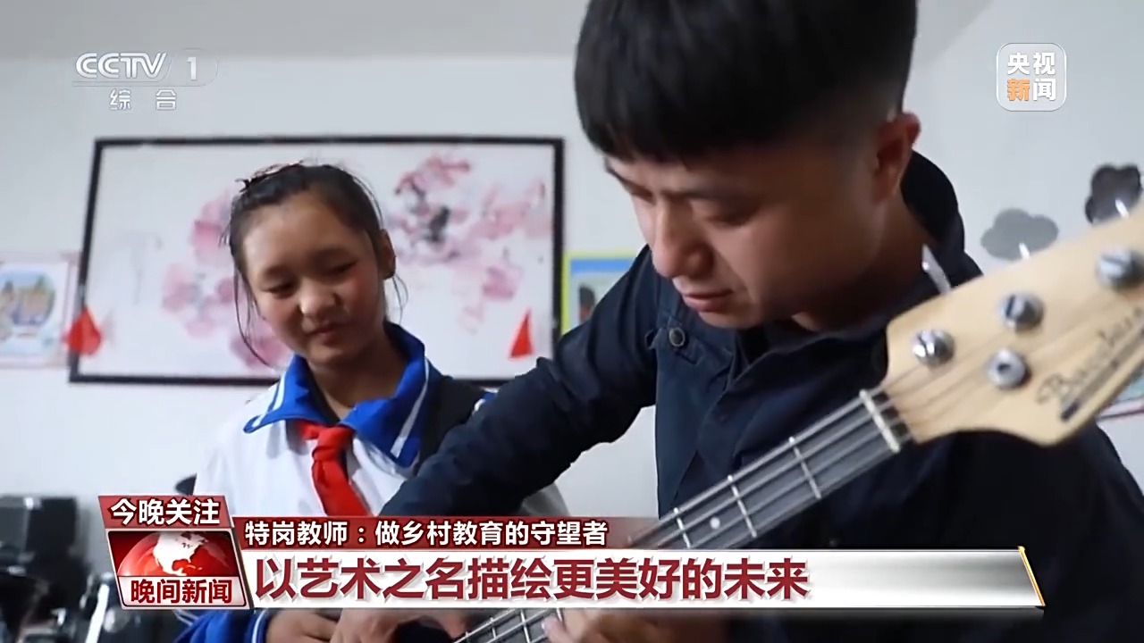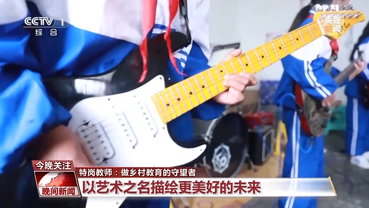 在貴州省六盤(pán)水市的海嘎村,特崗教師顧亞帶領(lǐng)孩子們玩搖滾,感受音樂(lè)傳遞的快樂(lè)與力量。