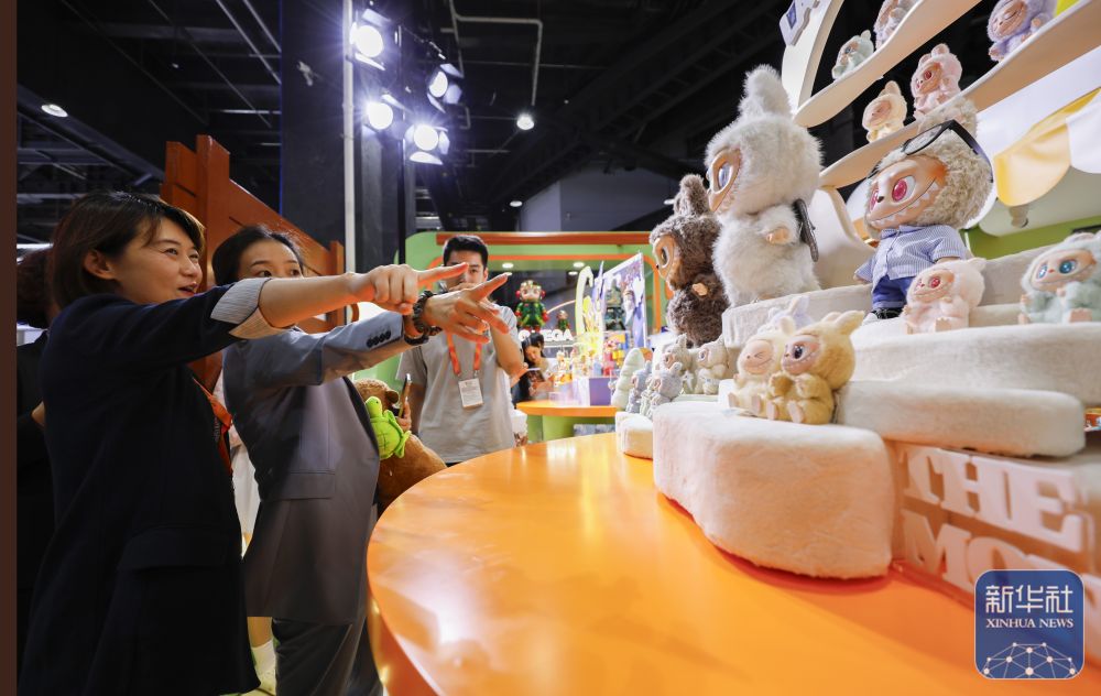 9月10日,觀眾在服貿(mào)會(huì)主題展區(qū)泡泡瑪特展臺(tái)前參觀。新華社記者 常能嘉 攝