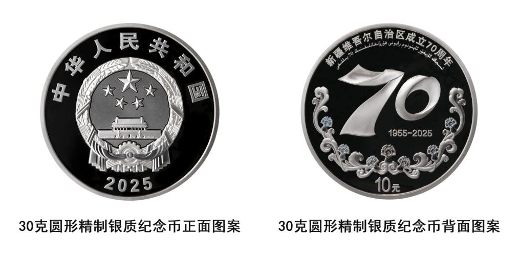 記者9月16日從中國(guó)人民銀行獲悉,中國(guó)人民銀行定于9月19日發(fā)行新疆維吾爾自治區(qū)成立70周年金銀紀(jì)念幣一套。該套金銀紀(jì)念幣共2枚,其中金質(zhì)紀(jì)念幣1枚,銀質(zhì)紀(jì)念幣1枚,均為中華人民共和國(guó)法定貨幣。