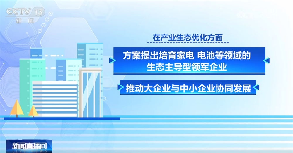 在產(chǎn)業(yè)生態(tài)優(yōu)化方面,方案提出培育家電、電池等領(lǐng)域的生態(tài)主導(dǎo)型領(lǐng)軍企業(yè),推動(dòng)大企業(yè)與中小企業(yè)協(xié)同發(fā)展;分批打造輕工業(yè)特色產(chǎn)區(qū),引導(dǎo)企業(yè)向中西部轉(zhuǎn)移,淘汰落后產(chǎn)能;通過產(chǎn)融合作、知識(shí)產(chǎn)權(quán)質(zhì)押貸款等方式,培育世界一流企業(yè)和專精特新“小巨人”企業(yè)。