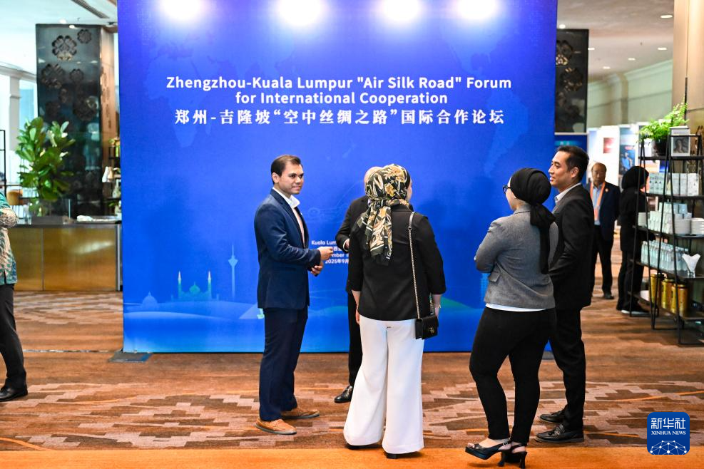 9月18日,馬來西亞吉隆坡國際機(jī)場舉行的鄭州-吉隆坡“空中絲綢之路”國際合作論壇開始前,嘉賓們在會(huì)場外交流。新華社記者 程一恒 攝