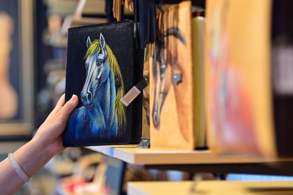 “伊犁是‘天馬之鄉(xiāng)’,我們在皮毛一體的馬皮上進(jìn)行手工繪畫,每幅圖案都是獨一無二的,讓非遺與旅游深度融合?!钡觊L茹柯耶·艾散介紹,店鋪還開發(fā)出馬毛筆記本、首飾等文創(chuàng)衍生品,深受年輕人喜愛。