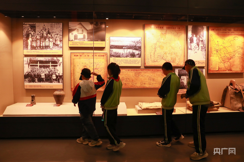 參觀學生在認真觀看展陳(央廣網(wǎng)見習記者 蘇睿楠 攝)