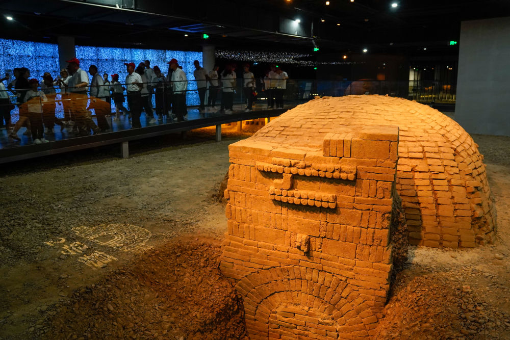 在庫(kù)車市友誼路鬧市區(qū),地下七八米深處,藏著新疆首座地下遺址博物館——龜茲魏晉遺址博物館,游客可以近距離觀賞珍貴的漢式磚室墓群。