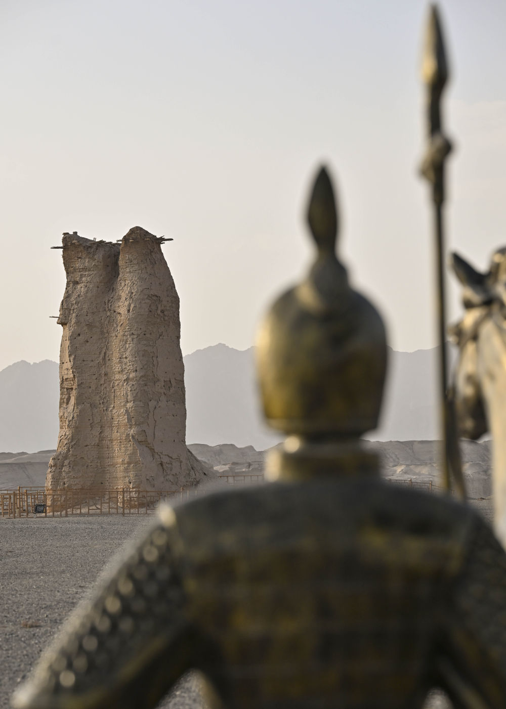“克孜爾尕哈”意為“紅色哨卡”。夕陽(yáng)下,這座漢代軍事設(shè)施的夯土墻體被映照得棱角分明,泛著淡淡的金紅色?!罢驹谶@里,仿佛看到了當(dāng)年的烽火傳訊?!币幻慰透锌卣f(shuō)。