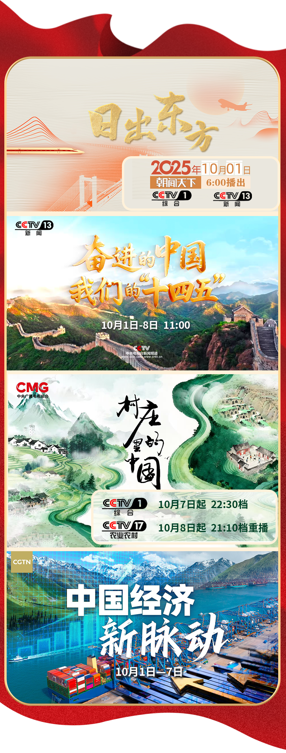 金秋潑彩山河醉,家國同輝氣象新。10月1日晚八點,《中國夢 家國情——2025國慶特別節(jié)目》將在《我愛你中國》的大合唱中拉開大幕。特別節(jié)目走進城市地標與文化遺址,展現(xiàn)山河新貌與奮斗者群像。經(jīng)典曲目、交響合唱、新創(chuàng)歌曲傳遞濃濃家國情懷??箲?zhàn)老兵、奧運冠軍、各行各業(yè)奮斗者深情講述……整場節(jié)目,洋溢著中華民族偉大復(fù)興勢不可擋的壯志豪情。