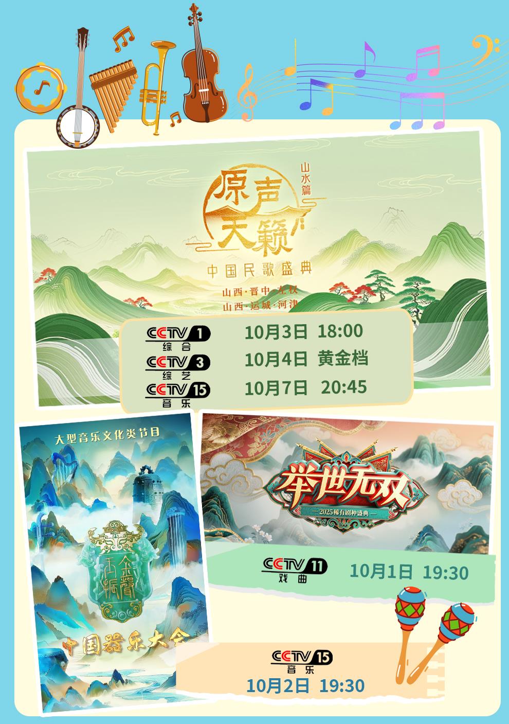 文藝節(jié)目,出新出彩!輕體量小鎮(zhèn)音樂會、稻田音樂會、河灘音樂會,《原聲天籟-中國民歌盛典》用民歌描繪山水間幸福畫卷。《金聲玉振——中國器樂大會》將賈湖骨笛、箜篌等古樂器與當代編曲結(jié)合,奇妙組合帶來全新聽覺體驗。《舉世無雙 2025稀有劇種盛典》匯集雁北耍孩兒、湖劇、阿宮腔等三十余個稀有劇種,盡展中華戲曲百花園獨特風(fēng)采。
