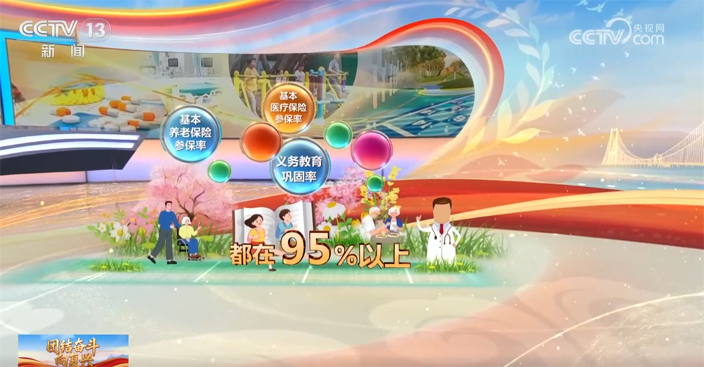 這五年,經(jīng)濟(jì)發(fā)展、科技進(jìn)步的成果實(shí)打?qū)嵉剞D(zhuǎn)化為群眾的獲得感和幸福感。我國(guó)已建成全球規(guī)模最大的教育體系、社會(huì)保障體系、醫(yī)療衛(wèi)生體系,義務(wù)教育鞏固率和基本養(yǎng)老保險(xiǎn)、基本醫(yī)療保險(xiǎn)參保率都在95%以上。