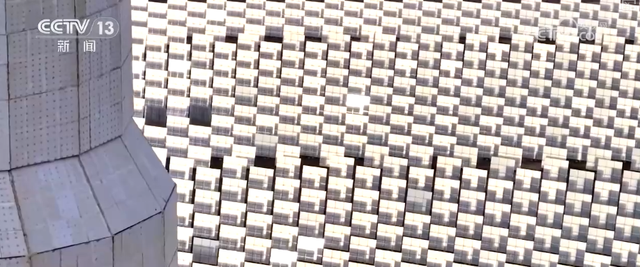 園區(qū)中,23000多面定日鏡如同一個(gè)個(gè)精準(zhǔn)的“追光者”,通過(guò)智能控制系統(tǒng)實(shí)時(shí)追蹤太陽(yáng)軌跡,將分散的太陽(yáng)光集中反射到高達(dá)200多米的吸熱器上,再通過(guò)大容量熔鹽儲(chǔ)熱系統(tǒng),實(shí)現(xiàn)24小時(shí)連續(xù)穩(wěn)定供電。