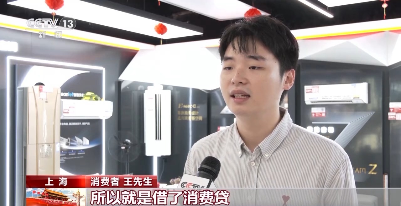 消費者 王先生:我想一次性把家電買齊,所以借了消費貸。有國家的補貼,緩解了我的資金壓力,其次就是它操作其實比較方便,比較快速地就能把我想買的都買齊。