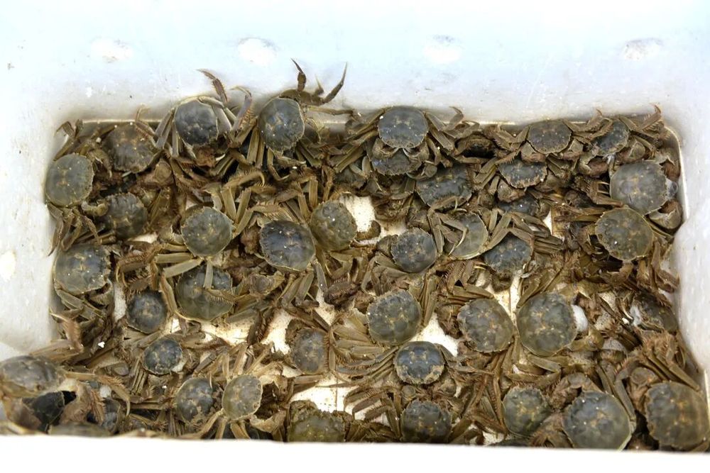 據(jù)介紹,遼寧毛蟹肉質(zhì)鮮嫩細(xì)膩,喜低溫環(huán)境,夏季生長較慢,至7月僅30克-40克,進入秋季后迅速增重至150克。判斷螃蟹是否成熟,可觀察其腿部:腿長且硬實即表示已長成。