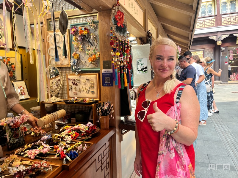 除了時尚消費的多元選擇,上海的特色消費更從“傳統(tǒng)好物”延伸至“科技潮品”,在滿足不同需求的同時,也向境外游客傳遞著中國文化的溫度與現(xiàn)代生活的便利?!拔屹I了很多中國茶葉,買了玉手串。我還買了各種絲綢制品,有漂亮的裙子、絲巾,還有一條可以和媽媽一起使用的絲綢毯子?!倍砹_斯游客艾琳娜的行李箱里,裝滿了頗具中國風的優(yōu)質商品,這些都是她眼中“最有中國味道的伴手禮”。