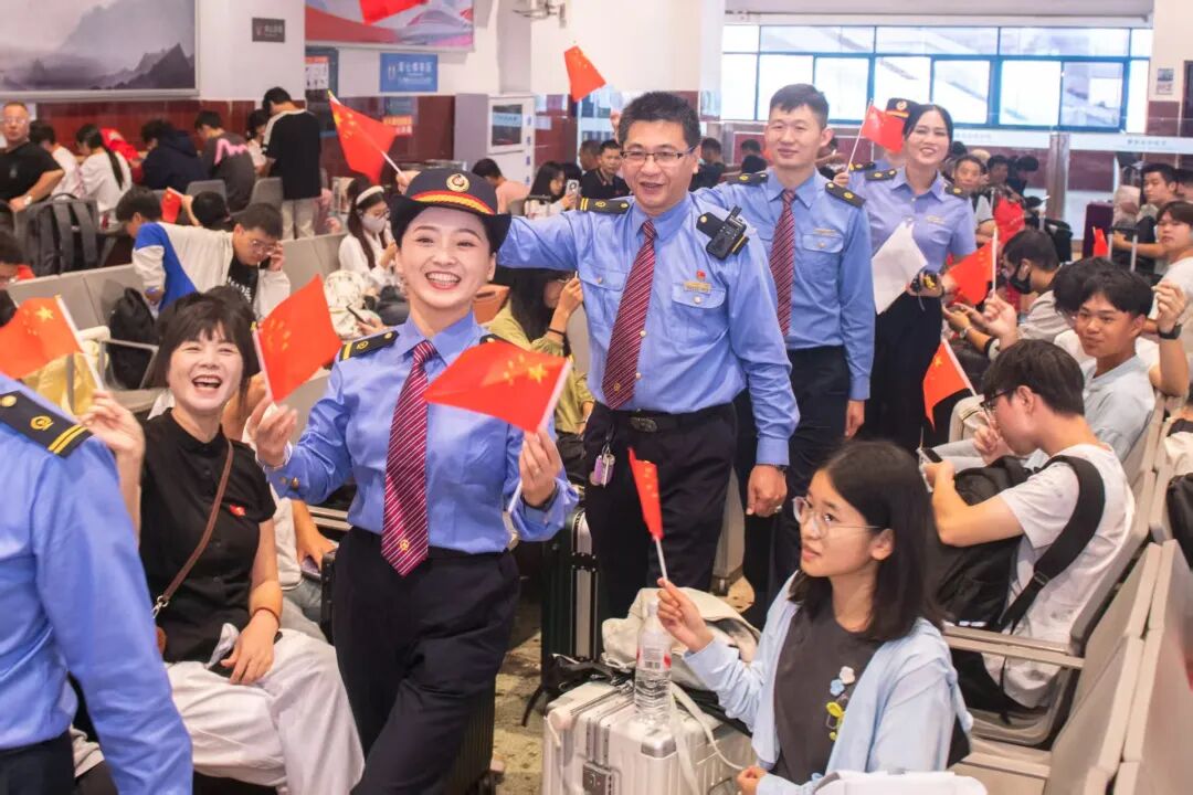 10月1日,廣州車務(wù)段惠州南站聯(lián)合站區(qū)兄弟單位開(kāi)展“我的鐵路風(fēng)景”主題快閃活動(dòng)?,F(xiàn)場(chǎng)氣氛熱烈,工作人員與往來(lái)旅客合唱歌曲、歡聚一堂,以真摯的情感共同為祖國(guó)獻(xiàn)上生日祝福。