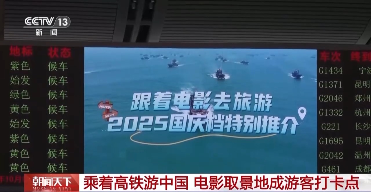 據了解,為持續(xù)推動“電影+”業(yè)態(tài)創(chuàng)新,國慶期間,在全國3000多個鐵路客運車站、4200多組動車組列車的車廂電視上,集中播放《跟著電影去旅游》等影旅主題推介視頻,不僅展示熱門電影取景地,還聯動多條鐵路旅游專線提供出行指引,邀請旅客體驗“鐵路+電影”的出行新方式。