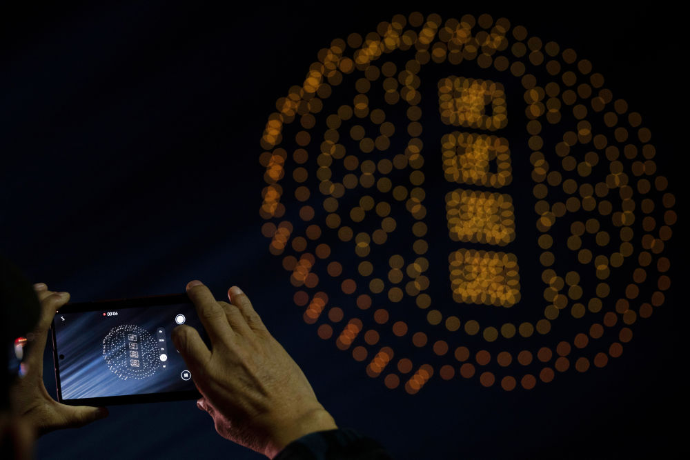 10月4日晚,在浙江省金華市武義縣花田美地景區(qū),精彩的無人機(jī)表演為游客呈現(xiàn)了一場(chǎng)視覺盛宴。新華社發(fā)(張建成攝)